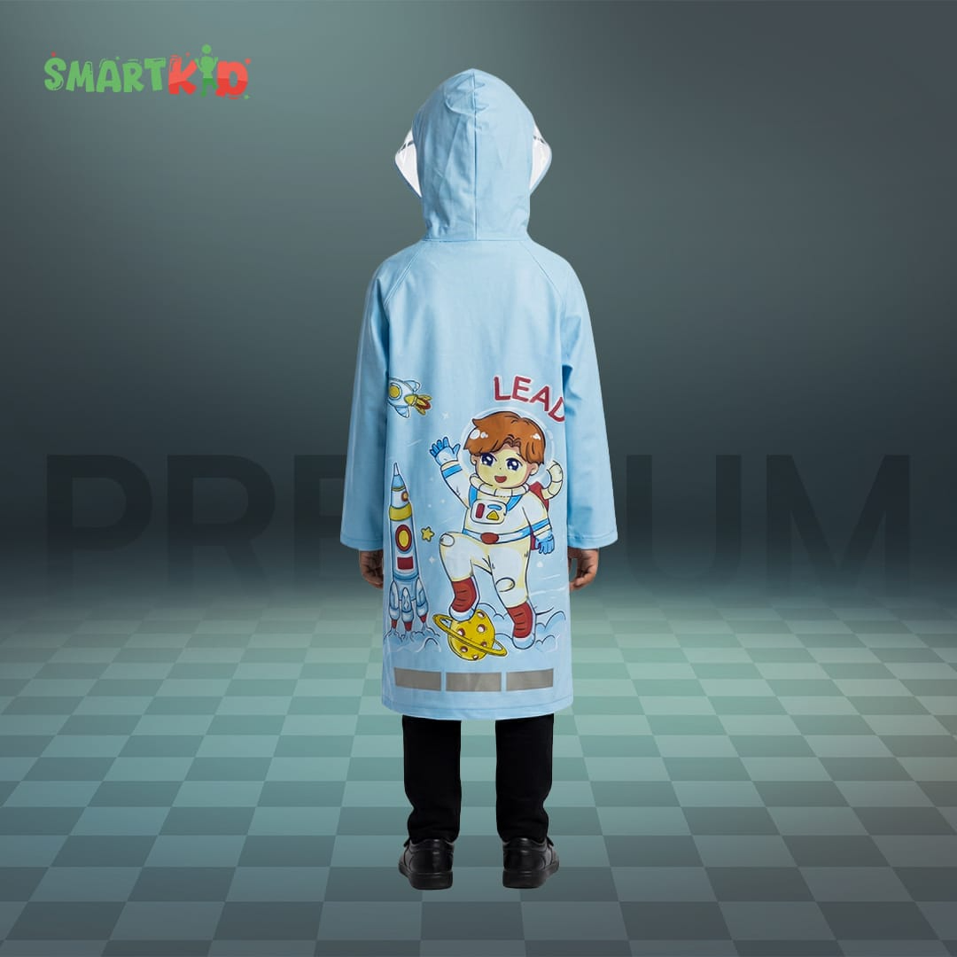 Cute Cartoon Astronaut Theme Sky Blue Rain Coat